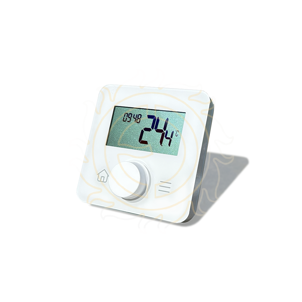 Parametry: týdenní program, zobrazení nastavené/skutečné teploty, provozní režimy Comfort, ECO, Stop, Protimrazová ochrana, Dovolená. Umístění na stěnu nebo volně na stojánek (napájení 2x AAA 1,5V), záloha programu v EEPROM paměti (10 let), obousměrná bezdrátová komunikace 868 MHz.