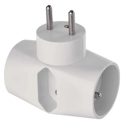 Rozbočovací zásuvka 2× kulatá + 1× plochá, bílá